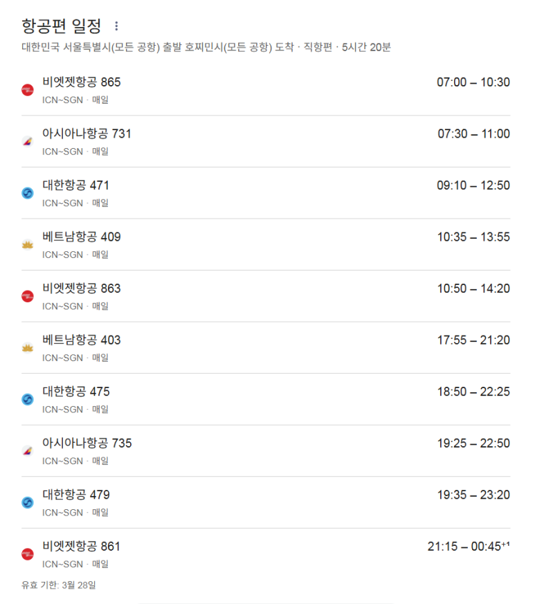 인천-호치민 구간은 여전히 하루 10편의 항공편이 운행하는데, 전통적으로 항공수요가 많은 노선이다 보니, 공급되는 항공권이 충분하지 않습니다. 특히 한국 국적의 저가항공사(LCC)의 철수 이후 재 진입이 되지 않다 보니, 미리 구입을 하지 않는 경우 여전히 비싼 가격에 호치민 항공권을 구매해야 합니다.